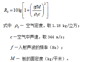 勻質(zhì)單層板聲波垂直入射時(shí)隔聲量(dB)理論計(jì)算公式: