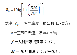 ① 勻質(zhì)單層板聲波垂直入射時(shí)隔聲量(dB)理論計(jì)算公式: