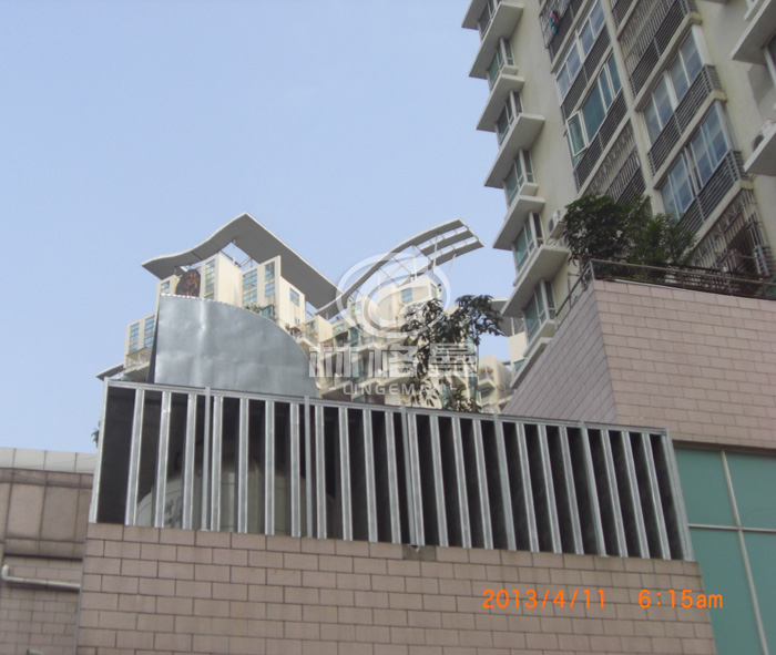 由于冷卻塔所用軸流風(fēng)機壓頭極低,其風(fēng)量和整體散熱效果對消聲系統(tǒng)的阻力損失極為敏感,故此類冷卻塔降噪治理的難點就在于寬頻帶、高量值的消聲要求與冷卻塔自身通風(fēng)散熱性能之間的尖銳矛盾;其噪聲治理必須兼顧熱工性能、結(jié)構(gòu)工藝、日常維修等一系列相關(guān)因素;還要妥善解決結(jié)構(gòu)承重、抗風(fēng)荷載、抗震等安全問題。因此必須面對現(xiàn)實,以目前條件為基礎(chǔ),因地制宜地進行妥善的降噪設(shè)計和必要的改造完善。要兼顧熱工性能影響、結(jié)構(gòu)工藝、日常維修、抗風(fēng)荷載強度以及周邊環(huán)境等一系列問題,該冷卻塔噪聲的隔聲與消聲處理是本項噪聲治理工程中最具難度和不確定性的部分。要求我們最大限度地協(xié)調(diào)處理好上述因素與噪聲治理需求之間的一系列相互矛盾、相互制約的因素,必要時有可能還要做出一定程度的妥協(xié)和讓步。
